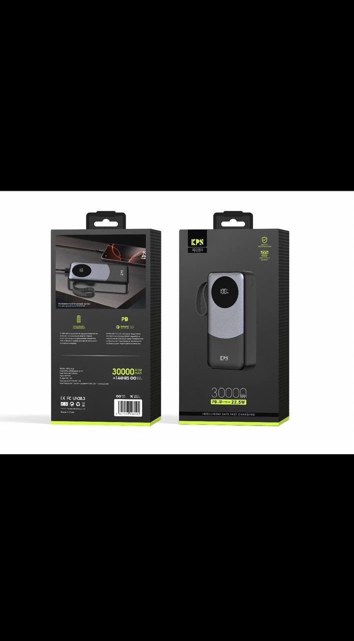 پاوربانک 30000 KPS مدل KPS-302 با شارژ سریع PD و QC ظرفیت: 30000 میلیآمپر پشتیبانی از شارژ سریع PD و QC دارای: نمایشگر LED طراحی جمعوجور و سبک مناسب حمل در کیف یا جیب.