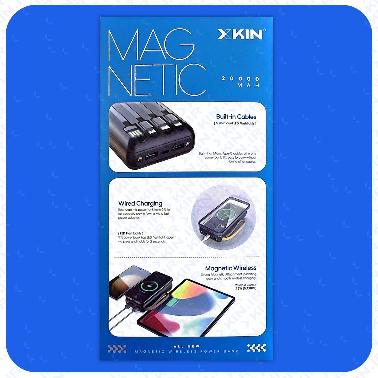 چراغ قوه قوی / کابل های متصل به پاور بانک XKIN -PB610 Lightning / Type-c / Micro / USB شما را از خرید کابل اضافه و خرابی کابل بی نیاز می کند .